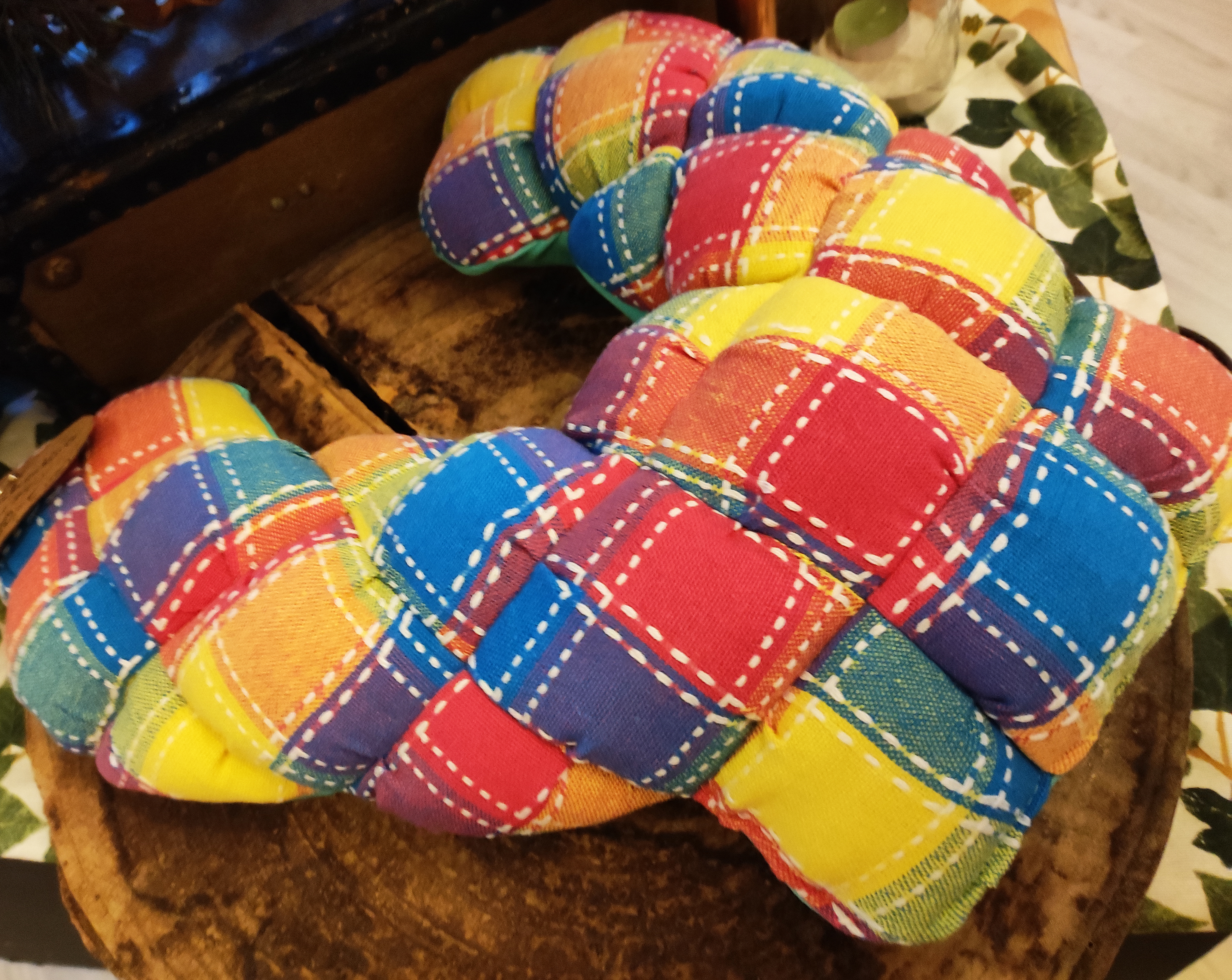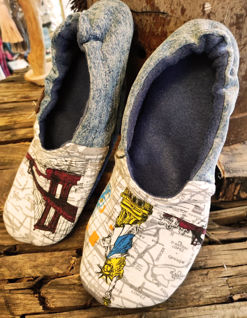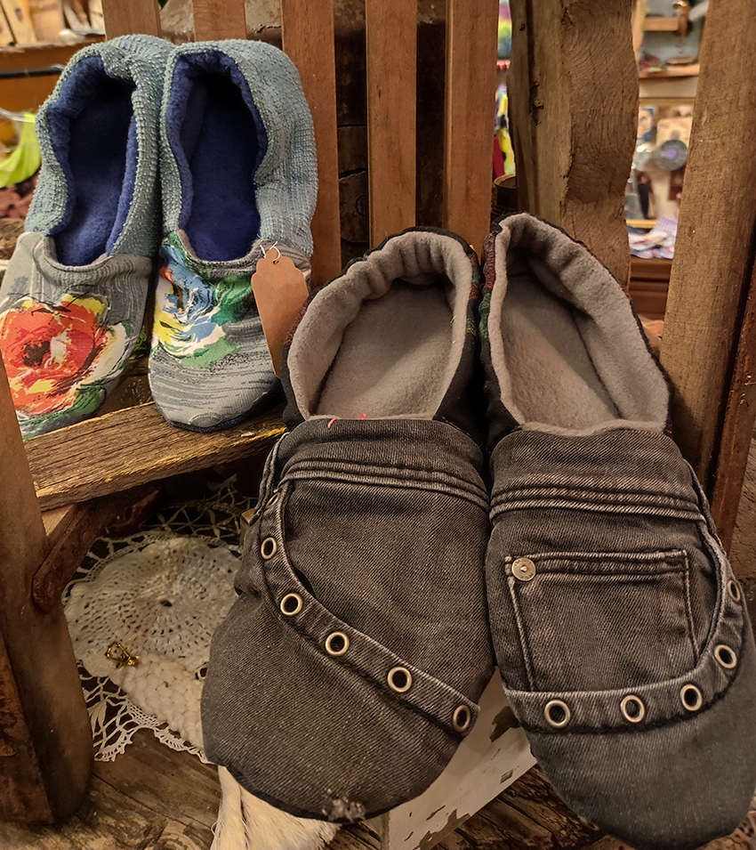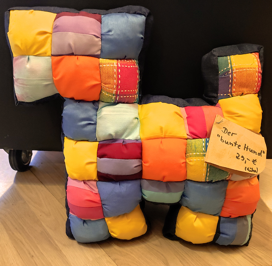 So entstehen aus vielen Stoffstückchen Quilts oder Taschen, aus abgelegten Jeans Schlafkörbe für die lieben Haustiere, aus Jerseyresten Patchworksocken oder Hausschuhe, aus Knöpfen Schlüsselanhänger, aus gestreiften Herrenhemden Strand- und Krabbeldecken. Meine Teile haben Geschichte und einen hohen Erinnerungswert,- und sie sind allesamt bereit für ihr