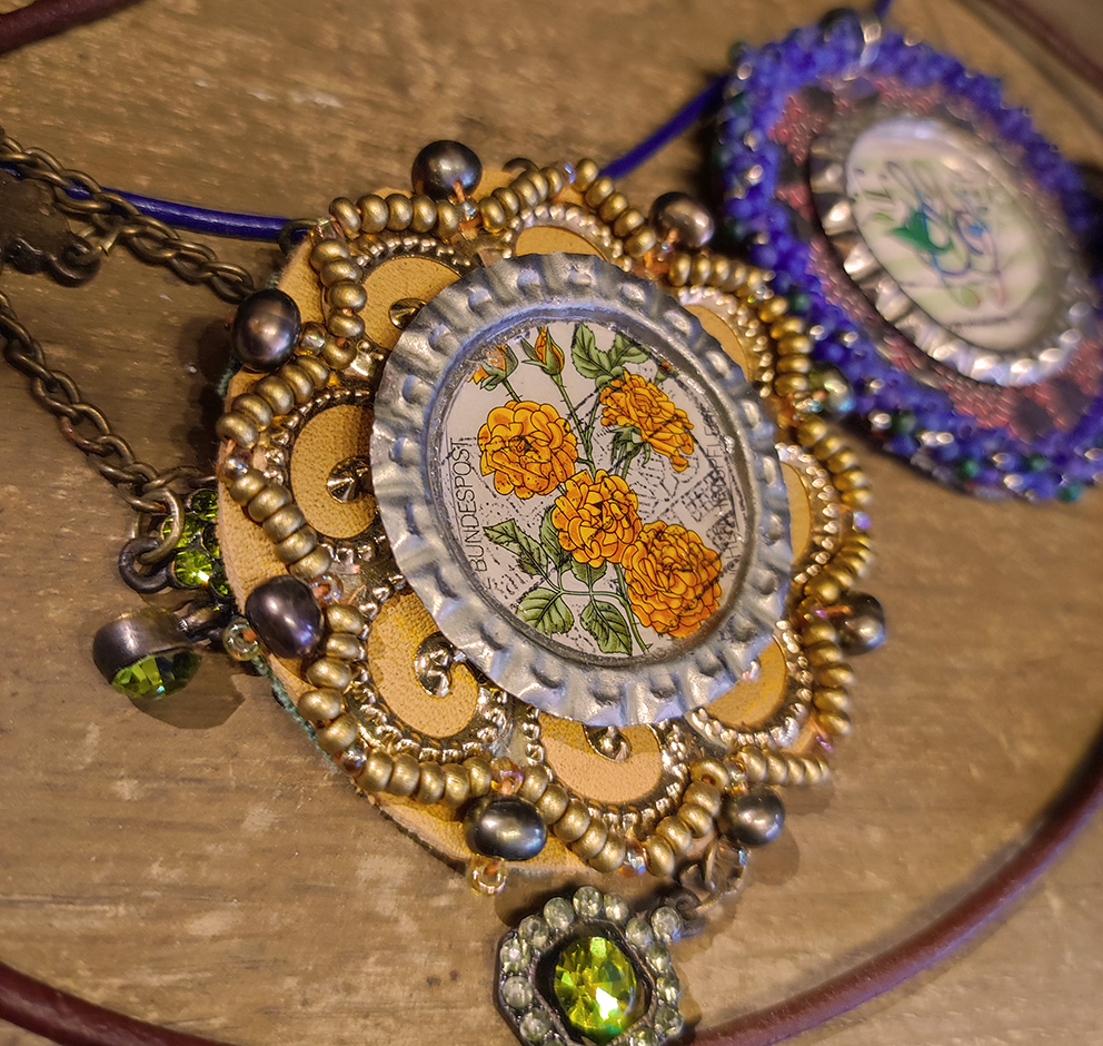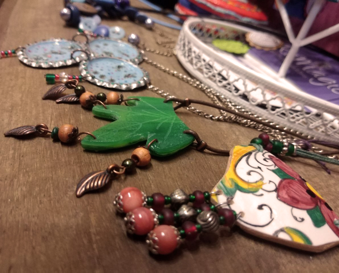 Meine Bandbreite von Arbeiten ist sehr groß und reicht von Schmuck, Deko bis hin zu Kleidung.